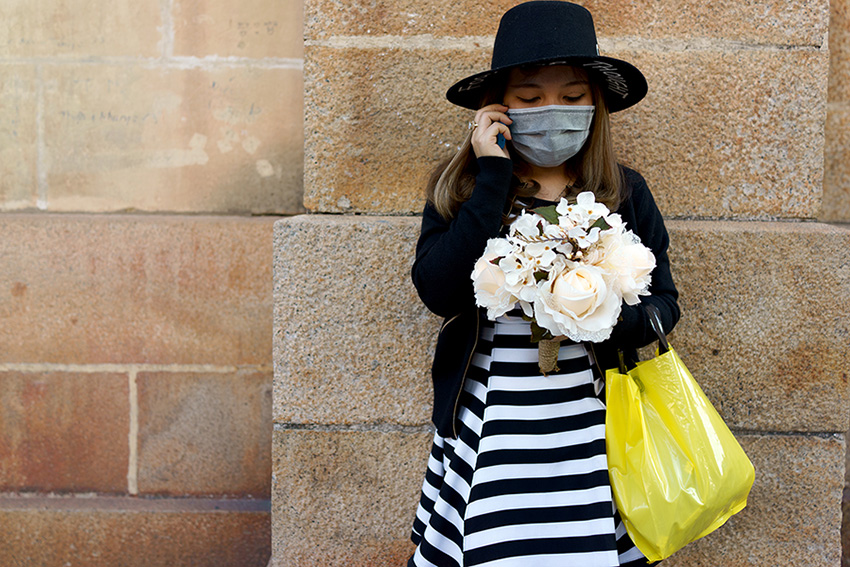 Mergina su geltonu maišeliu