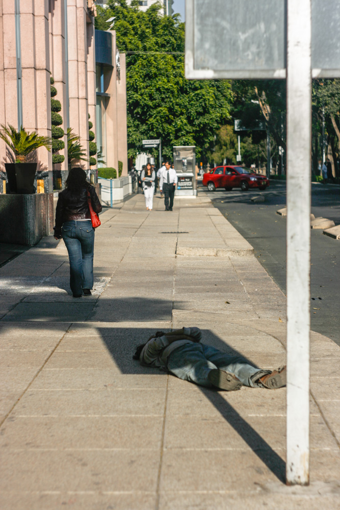 Įsivaizduok, šviesiaodis europietis tempentis bomžą smirdantį, purviną, girtą meksikietį į pavėsį. Būtu dar geresnė nuotrauka. :)