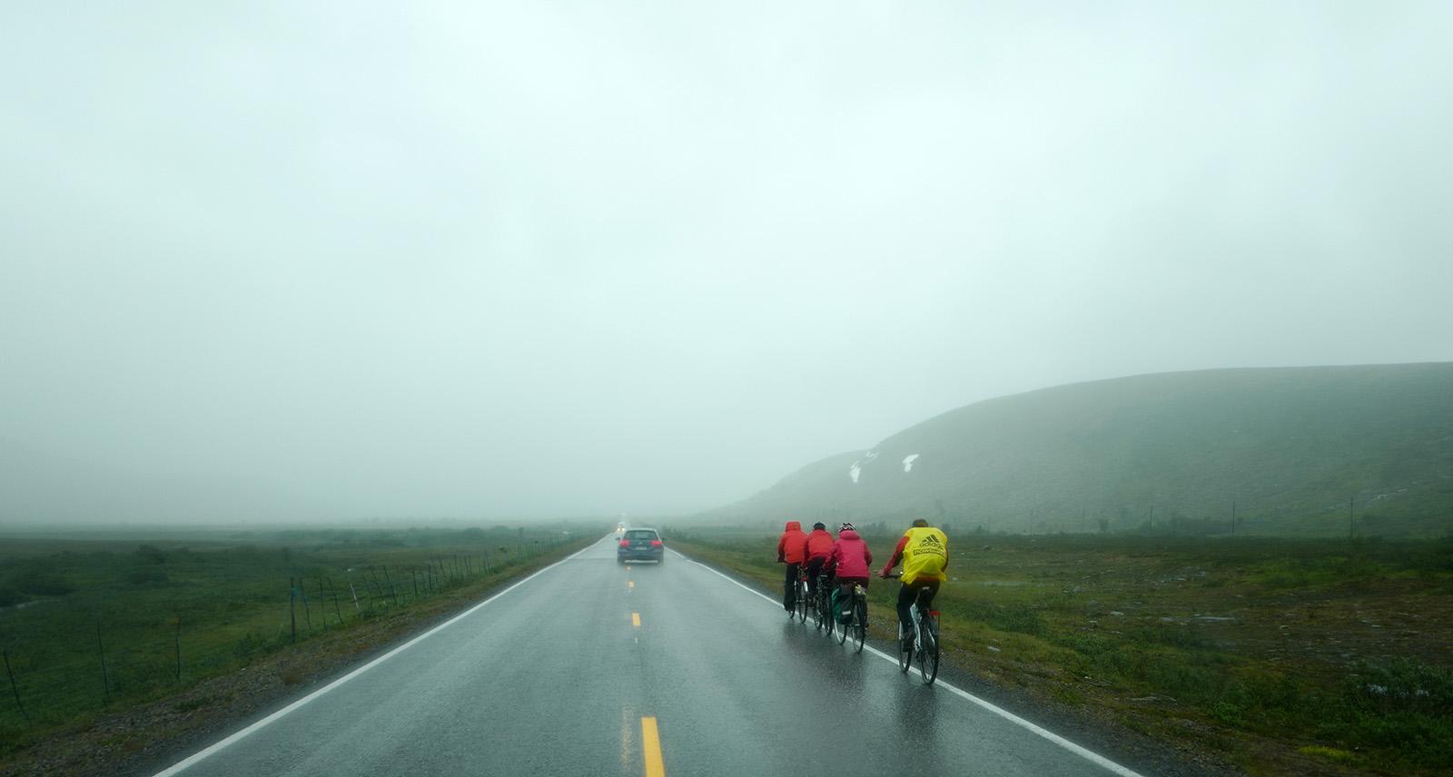 Jiems liko mažiau nei 100 km iki šiauriausio Norvegijos miesto Hammerfest. +12, lietus ir vėjas. Ir tai dažnas reiškinys.
