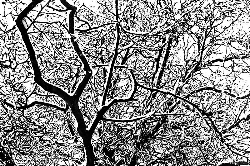 Petrai, čia Tri-X juostele buvo nufotografuoti apsnigti medžiai. Užsimaniau labiau pabrėžti persipynusių šakų grafiką ir palikti tik ją, todėl nusprendžiau, kad pilkų atspalvių man visai nebereikia. Taigi, redagavimo programoje ant kreivės uždėjau du taškus ir labai iškėliau šviesiąją kreivės dalį bei truputį nuleidau tamsiąją. Viskas, „Save as jpeg“ ir į Kūdrą.