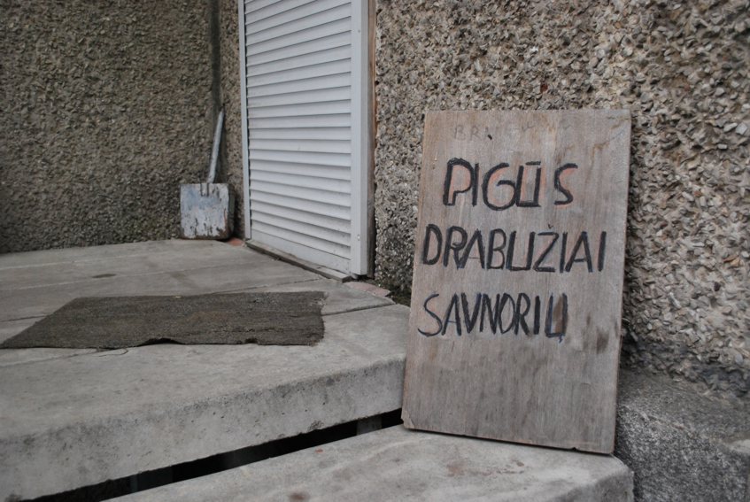 Prie dėvėtų rūbų parduotuvės