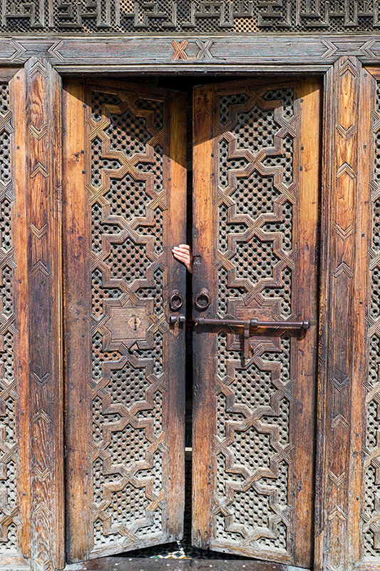 Marokas, Fesas, medina, medresė, kedro raižinių durys