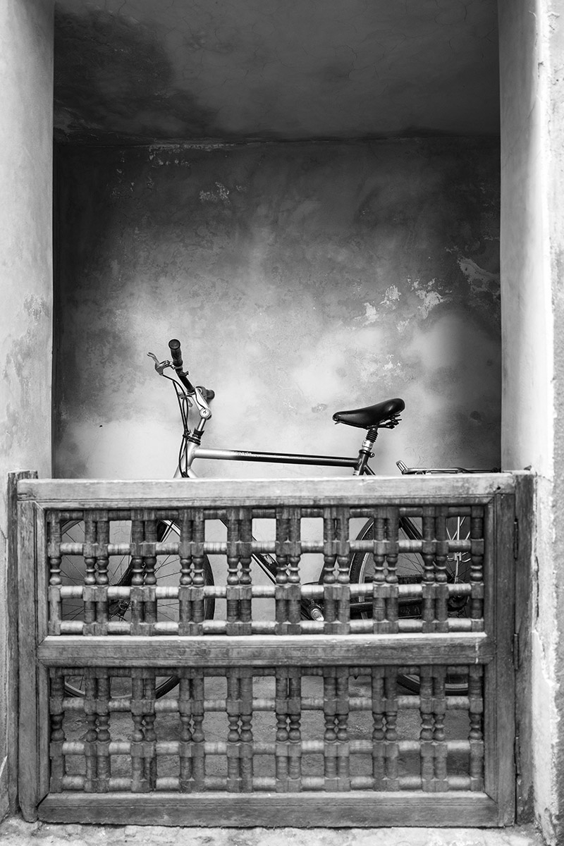 Marokas, medžio drožiniai, antique dviratis