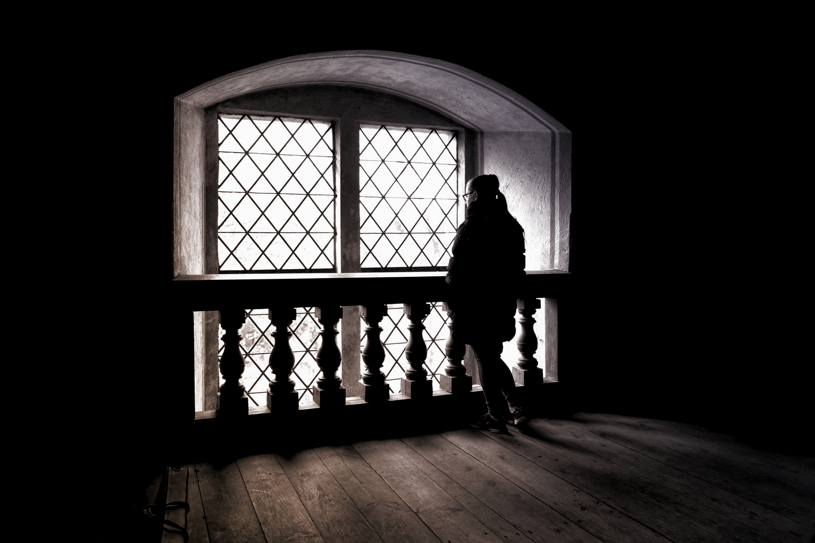 mergina šalia lango
