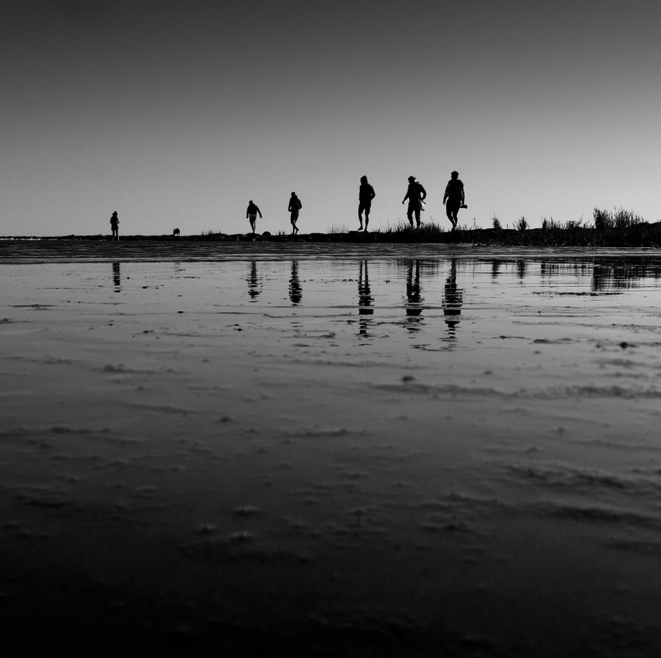 Asimetrija cia neatsitiktine, taip paskirscius figuras atstumu nuo krastu, dydziu ir vizualiu svoriu pasiskirstymas man regis teisingesnis, nei viska simetrizuoti.