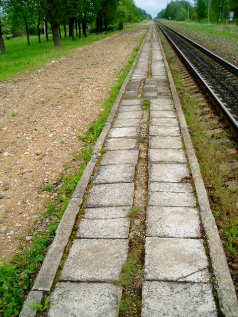 gal ir daugiau - žvyrkelis, 2 eilės plytelių, 2 bėgiai... :)