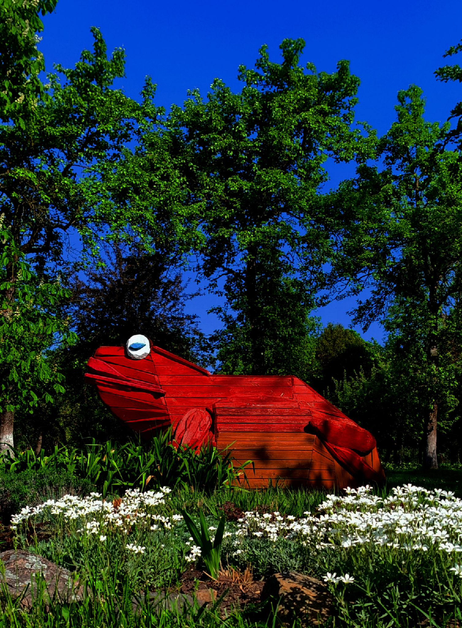 viršus iki akių visai nereikalingas. Varlė ir gėlytės. Būtų geresnis kadras