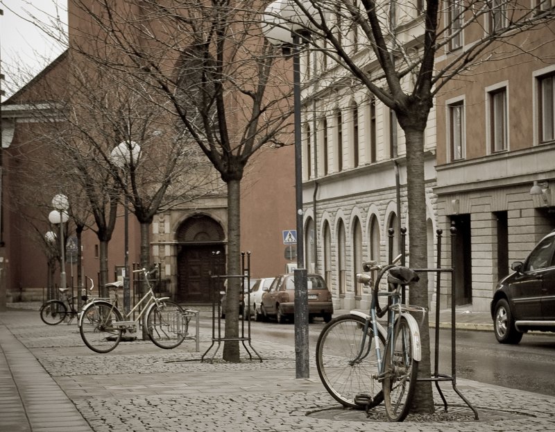 O man kaip tik patinka kontrastas tarp dviračių ir automobilių