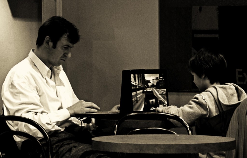 šiuolaikinis šeimynnis vaizdelis :) gerai kad dar tarpusavyje ne per skaipa sneka :)