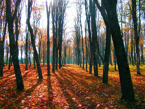 Dangaus gal išties kiek daugoka, nes visas grožis lapuose, kontrastuojančiuose su medžių kamienais.