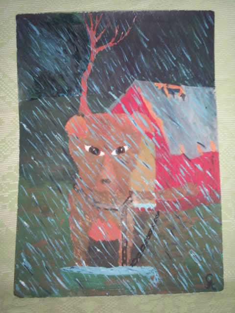 pirmiausia tai piesti iki pat lapo krastu nepatartina, nebent pats lapas butu kartonas ar pan..Aisku del kompozicijos gincytis negaliu... bet medi visgi reikejo patraukt i sona, kad ne is suns galvos kysotu.. :)