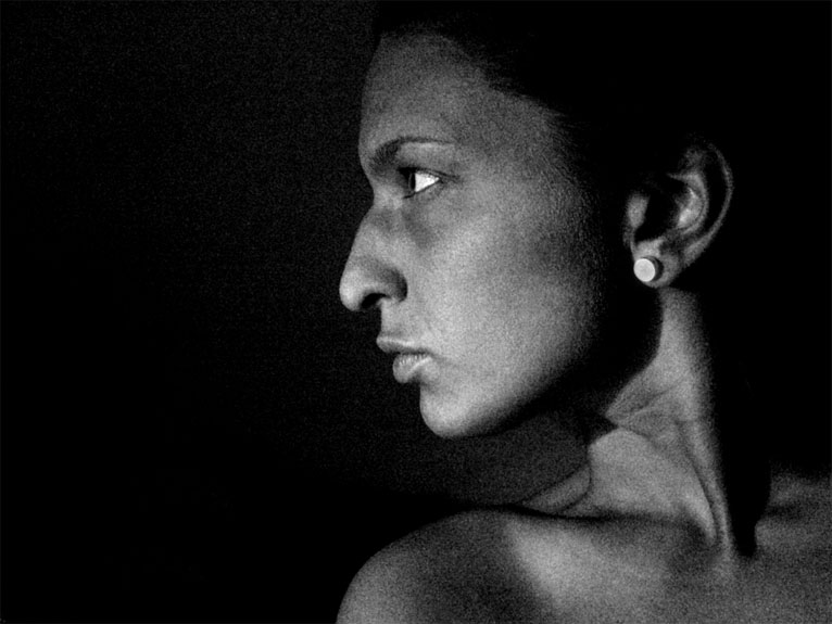 cia as matau dvieju trikampiu zaidima. nosies galiuko - akies - auskariuko ir auskariuko - nosies galiuko - kakle esancios duobutes. ties pastaraja apsistociau :). beje Ramunas gerai pastebejo :). rimtai kaip egipto piesiniuose galva.