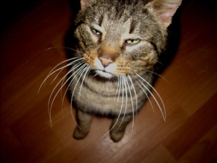 katinas atrodo kaip ko nors uzrukes arba prisimerkes nuo blykstes :D nieko gero, bet is mandagumo nevertinsiu :)