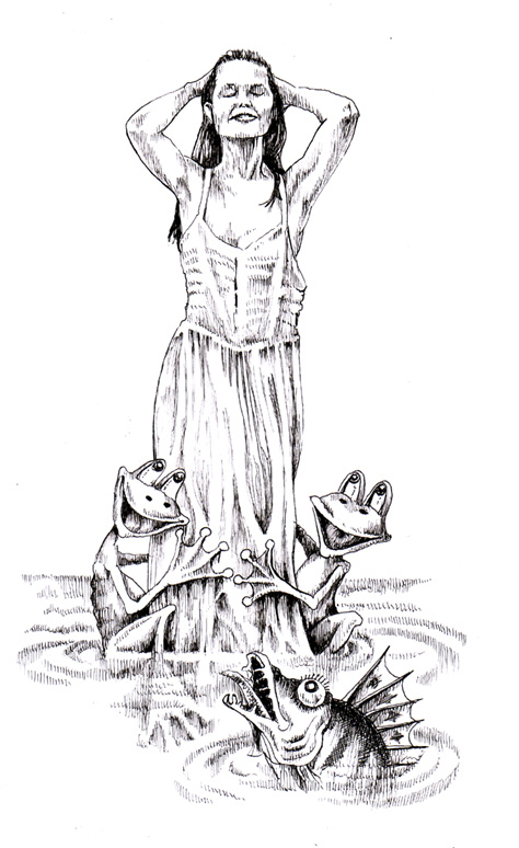 Na, kadangi mergaitė "skolinta" , tad nieko nerašysiu. Bet Kūdrius su Pelkium ir ta bevardė žuvis, kuri tuoj nusikąs sau liežuvį - verti dėmesio personažai! Puikus piešinys!