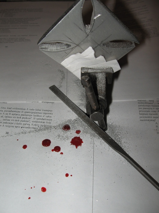 as irgi buvau nurezus dvieju pirstu galus kartu su nagais, o kraujo buvo dar daugiau. Kapsejo kaip is ciaupo.