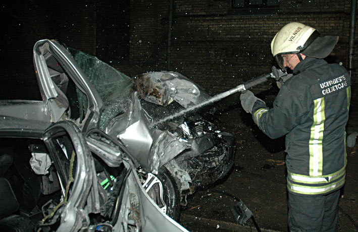 LABAS RYTAS VISIEMS. net keista, kad po tokio smugio i medi automobilyje "Alfa Romeo" dar liko gyvu zmoniu. masina daugiau kaip 50 metru slydo sonu, kol trenkesi i medi. po smugio automobilis uzsidege. du zmones is metalo lauzo kruvos islupo ugniagesiai2008.04.15 Vln mazdaug 4.15 val. ryto