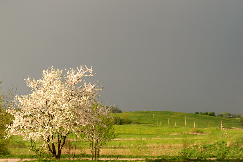 Patinka: elektros linija suteikia gerą perspektyvą kadrui. Dar patinka: graži obelis gražiai apšviesta. Nepatinka: dangus biški toks negyvas. Gal reikėjo kiek su kreivėm ar leveliais dar kiek pažaisti. 4.5