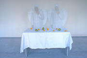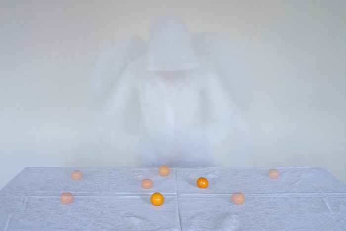 Būtų gerai, jei foto parodos autorius(-ė) pridėtų bent porą sakinių/komentarų apie patį darbą, duotų kažkokią nuorodą į pagrindinę kūrinio mintį (tas labai padėtų nenuvokiems žiūrovams, tokiems kaip aš :), nes dabar mano akimis žiūrint (o žiūriu tikrai įdėmiai ir religinė tematika man pakankami artima, gal tik ne taip tiesmukai tai pateikiu), tai tik snapshotų rinkinys iš keisto vakarėlio, kur žmones baltais rūbais žaidžia su degtukais.